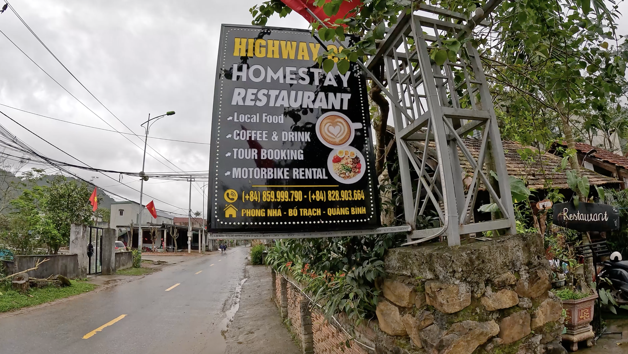With a few hours before the safety briefing, I joined Dave and Ashok (two fellow adventurers) for a walk into town. After dodging a few rain clouds and street cows, we landed at Highway 20 Homestay & Restaurant, which served both Western and Vietnamese fare.